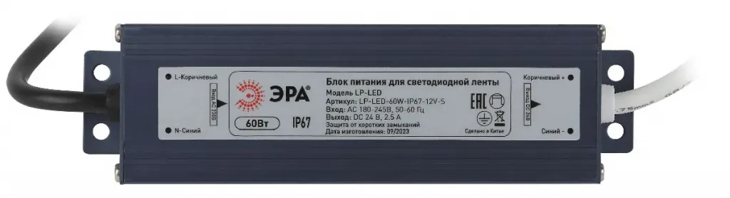 Блок питания Эра 60Вт DC24В 2.5A IP67 LP-LED-60W-IP67-24V-S Б0061144