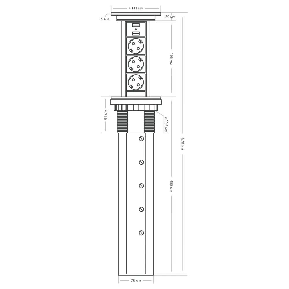 Блок розеток 105S (3 секции и 2 USB) Mebax 00-00001166