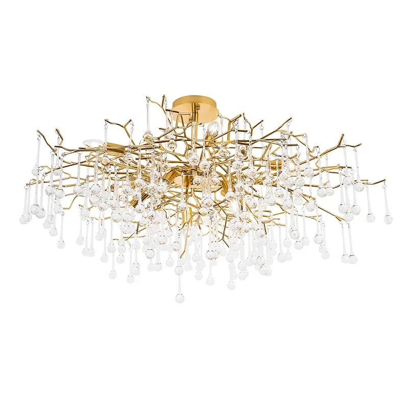 Потолочная люстра в виде ветвей деревьев золотого цвета с прозрачными подвесками-каплями Droplet Chandelier
