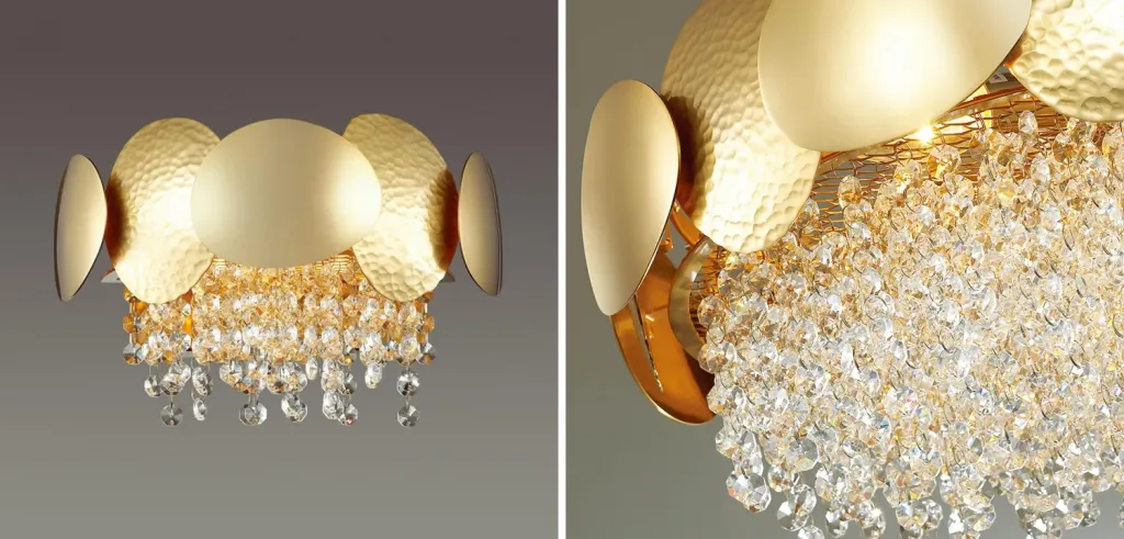 Бра с хрустальными прозрачными подвесками и круглым основанием золотого цвета FAIRYTREE Light