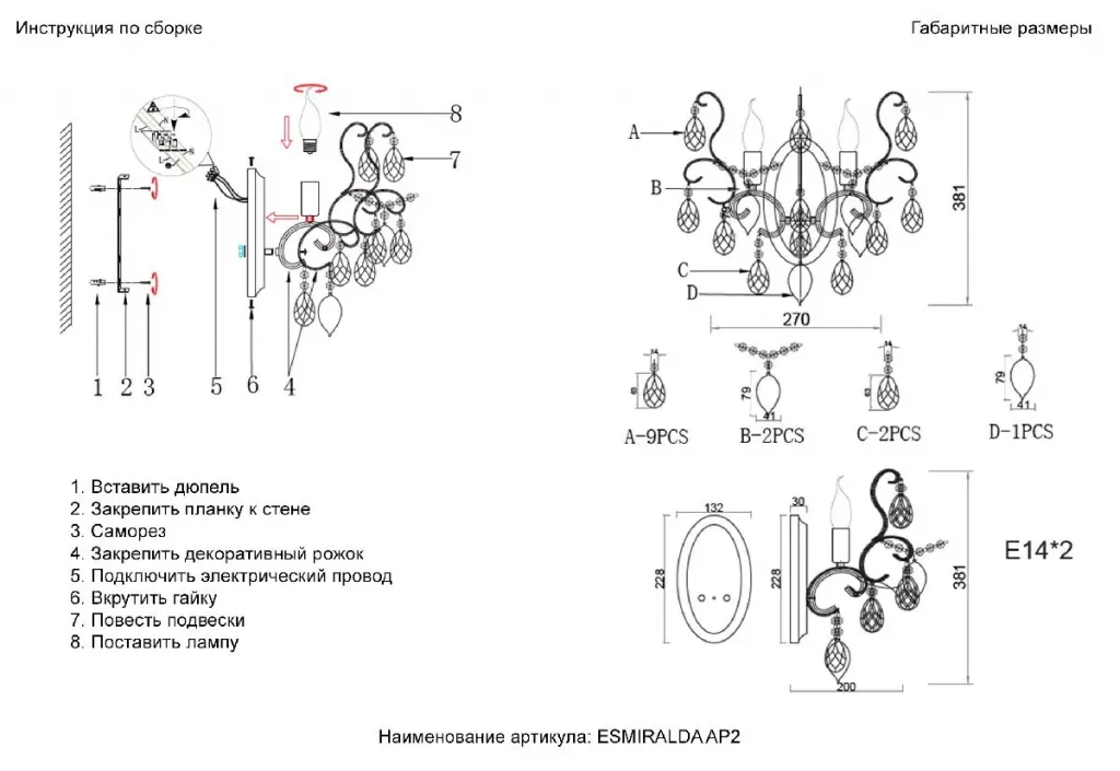 Бра Crystal Lux ESMIRALDA AP2 SILVER