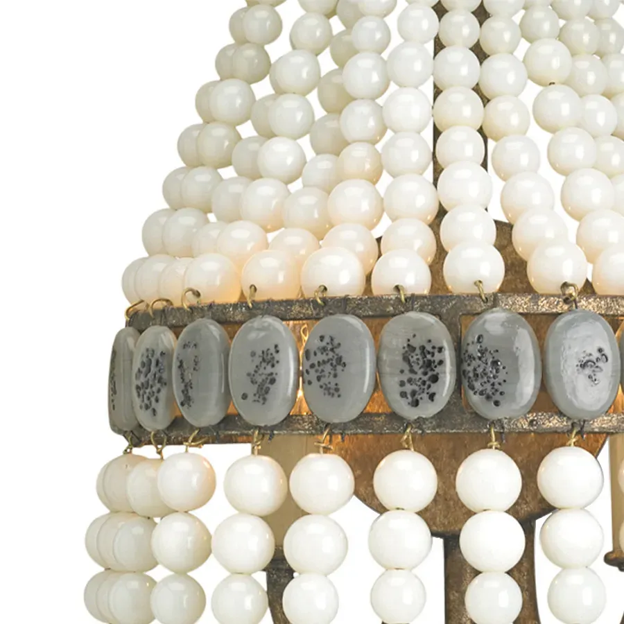 Люстра каплевидной формы украшенная серыми бусинами Wooden Beads Grey Chandelier