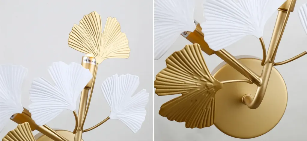Люстра подвесная с белыми матовыми и золотыми глянцевыми листьями Wintery flovers