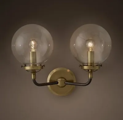 Бра Bistro Globe Clear Glass Double Sconce Brass
