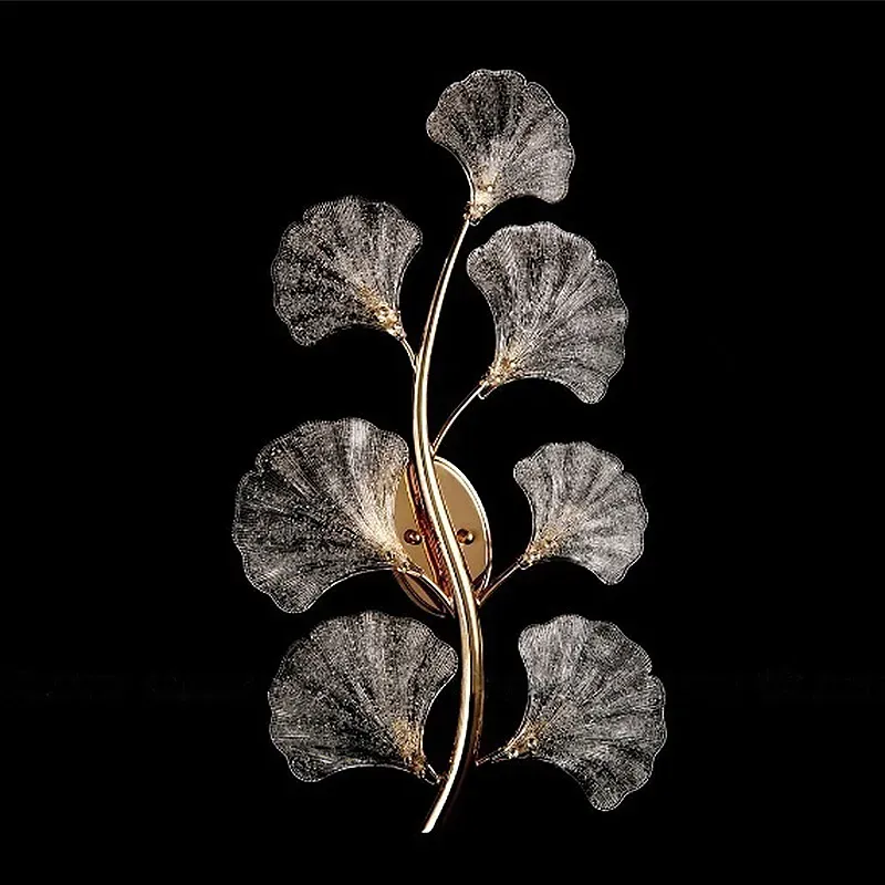 Бра в виде золотистой ветви с прозрачными листьями Andrea Wall Lamp