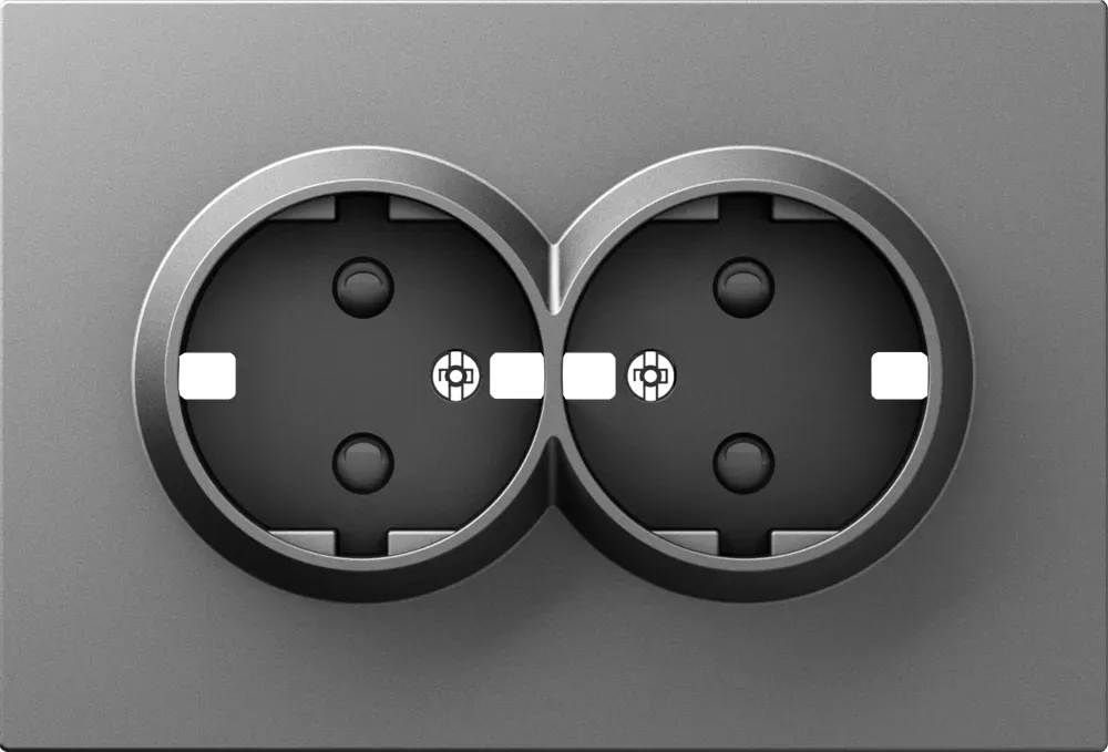Розетка двойная с заземлением со шторками в сборе с рамкой 16А Donel A07 матовый титан DE22245+DB28800