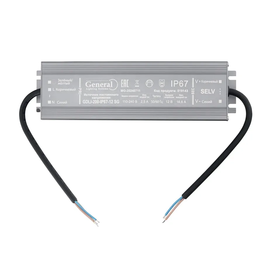 Драйвер светодиодный General GDLI-200-IP67-12 SG 519143