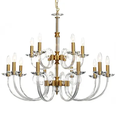 Люстра с 18-ю лампочками и изогнутыми прозрачными элементами из стекла Twisted Glass Candles Chandelier