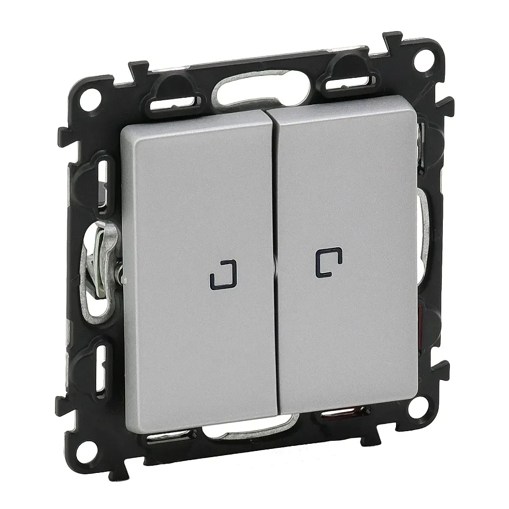752609 Valena LIFE. Переключатель двухклавишный 10АХ 250В с подсветкой. С лицевой панелью. Алюминий Legrand