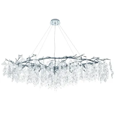 Люстра с хрустальными подвесками в виде листьев Fairytree Leaves Linear Silver Chandelier