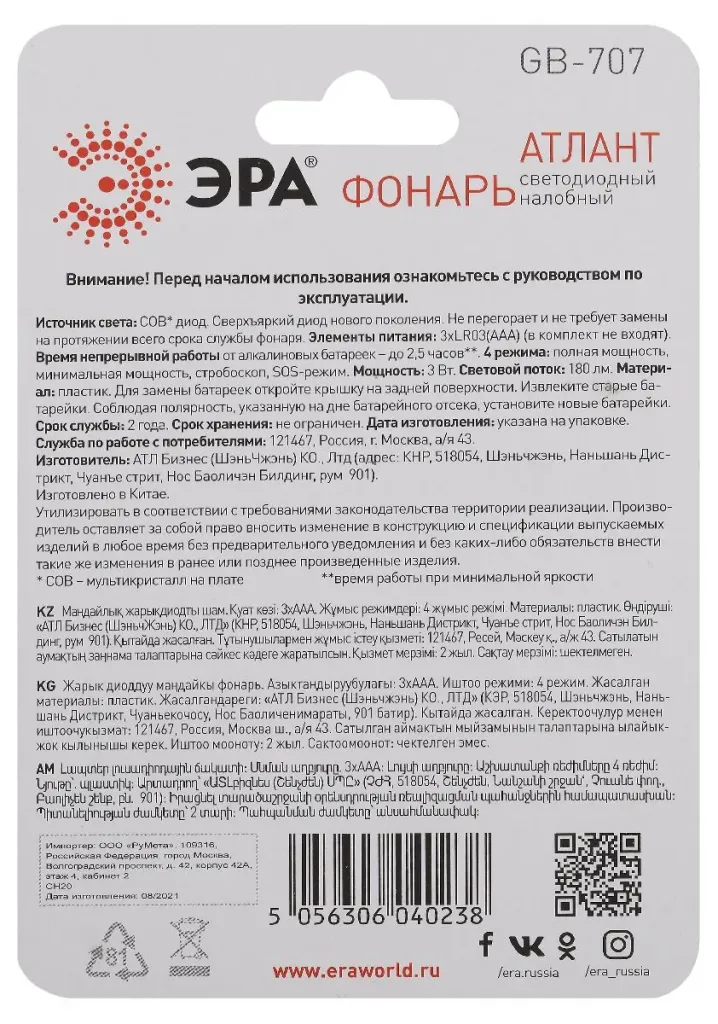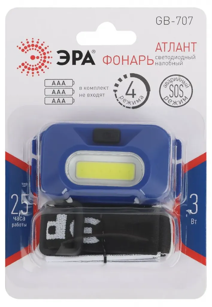 Фонарь налобный Атлант на батарейках Эра GB-707 Б0052749