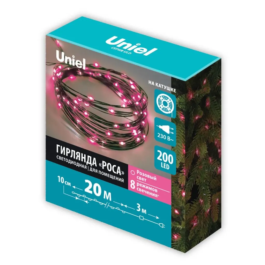 Гирлянда Роса Uniel ULD-S2000-200/DGA PINK IP20 DEW UL-00012081