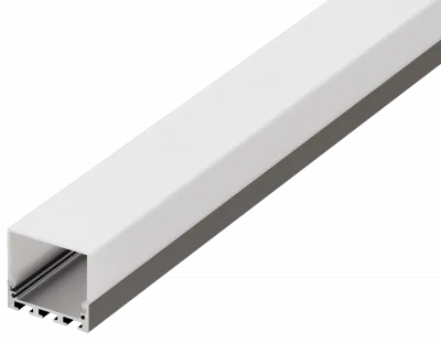 Накладной/подвесной алюминиевый профиль, 50х75х2000мм. В комплекте матовый экран, 2 торцевые заглушки,DN18, белый RAL9003