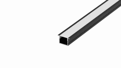 Встраиваемый алюминиевый профиль, 15,9х10х2000мм. В комплекте матовый экран, 4 торцевые заглушки, 4 крепежа, черный RAL9005