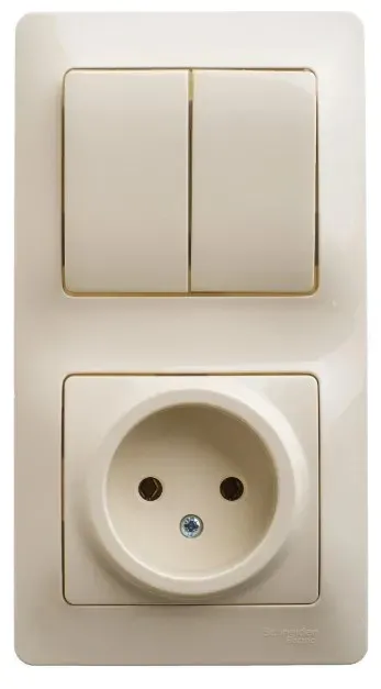 GSL000272 БЛОК: РОЗЕТКА + 2-клавишный ВЫКЛЮЧАТЕЛЬ БЕЖЕВЫЙ Glossa Schneider Electric