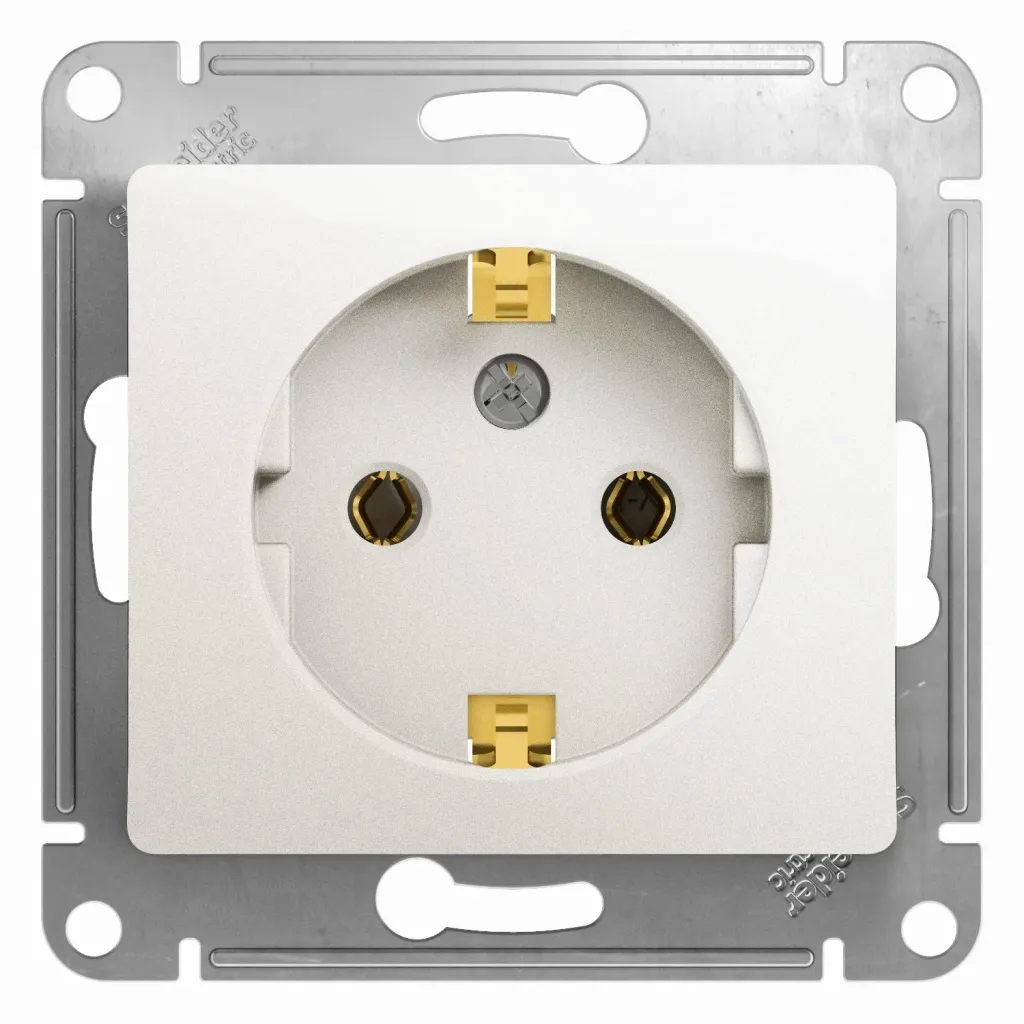 GSL000945 РОЗЕТКА с заземлением со шторками,16А, 250В, механизм, МОЛОЧНЫЙ Glossa Schneider Electric