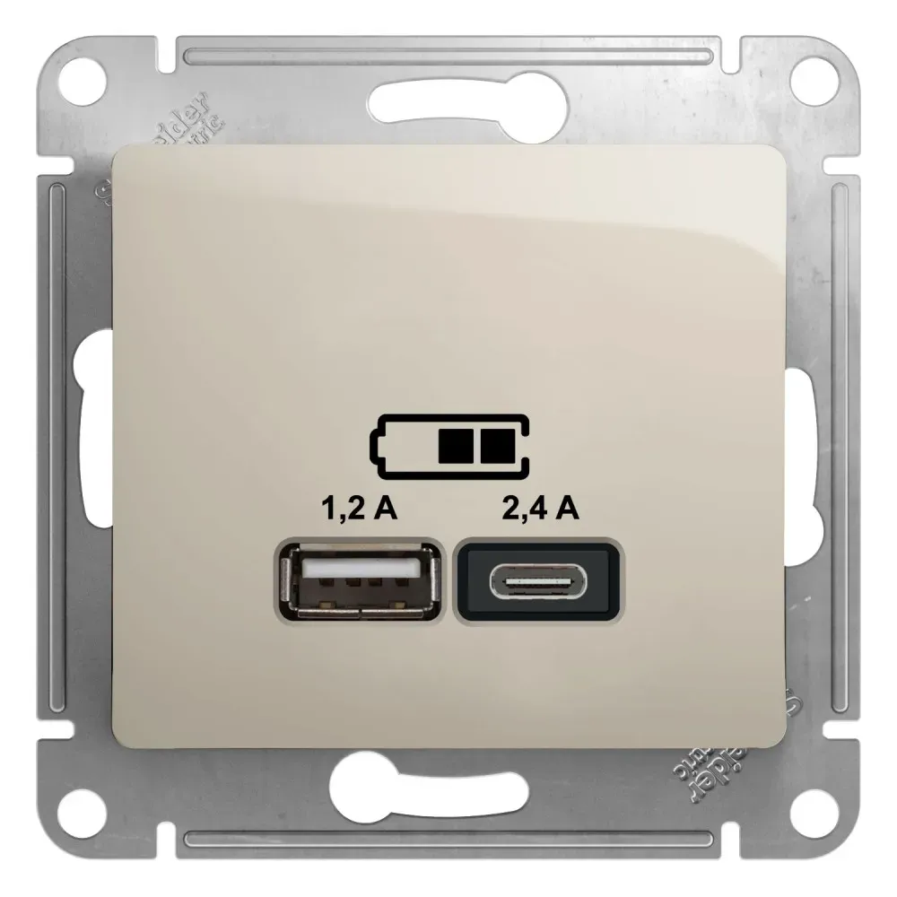 GSL000239 USB РОЗЕТКА A+С, 5В/2,4А, 2х5В/1,2 А, механизм, БЕЖЕВЫЙ Glossa Schneider Electric