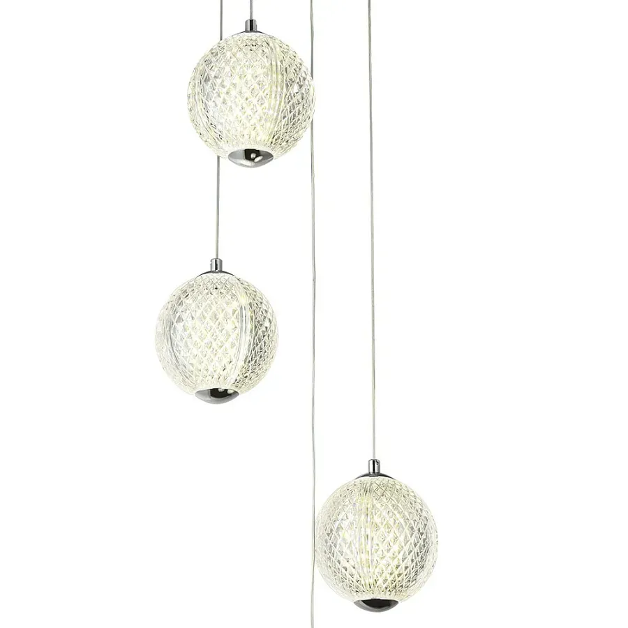 Подвесной светильник с плафонами в виде 3-х сфер из рельефного акрила Morgaine Spheres Chrome Light
