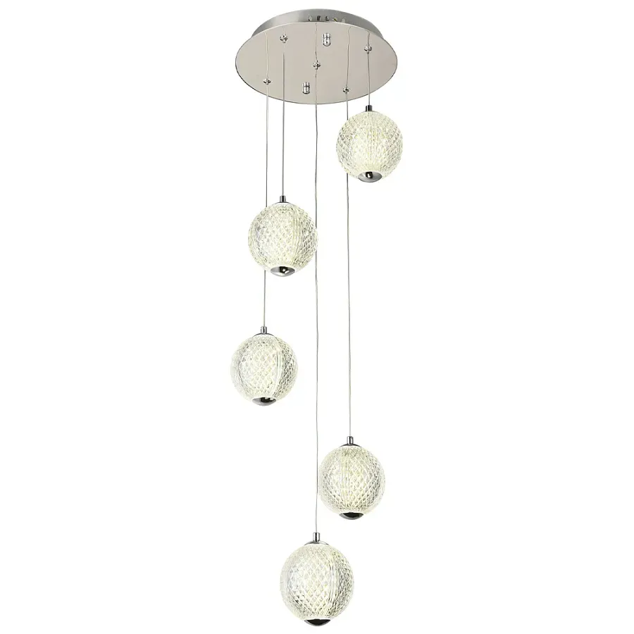Каскадная люстра с 5-ю плафонами из акрила в виде шара Felice Chandelier Chrome