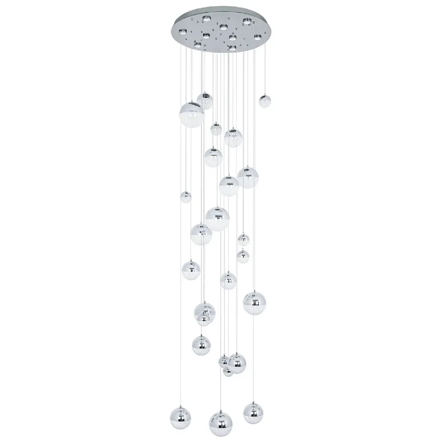 Каскадная люстра с плафонами в виде хрустальных сфер Esme Sphere Crystal Chrome Cascade Chandelier 25