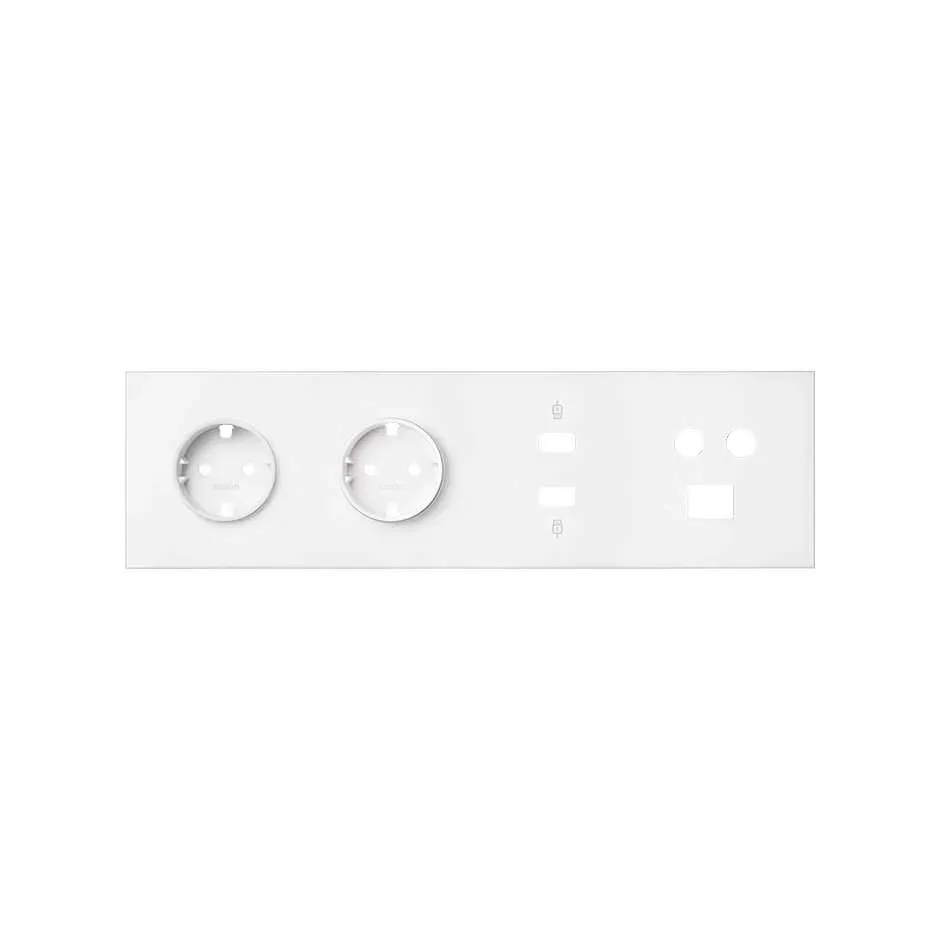Кит на 4 поста, фронт: накладка на 2 розетки Schuko + 1 розетку TV+SAT + 1 розетку RJ45 + 1 розетку HDMI + 1 розетку USB белый глянец Simon 100, 10020402-130