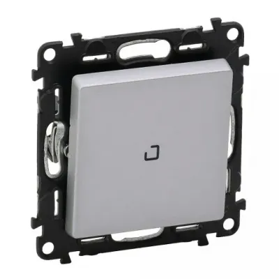 752316 Valena LIFE. Выключатель кнопочный 6А 250В. Безвинтовые зажимы. С лицевой панелью с символом "звонок",с подсветкой. Алюминий Legrand