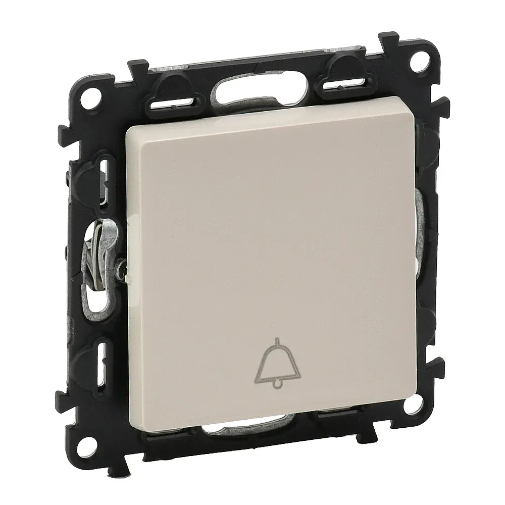 752216 Valena LIFE. Выключатель кнопочный 6А 250В. Безвинтовые зажимы. С лицевой панелью с символом "звонок",с подсветкой. Слоновая кость Legrand