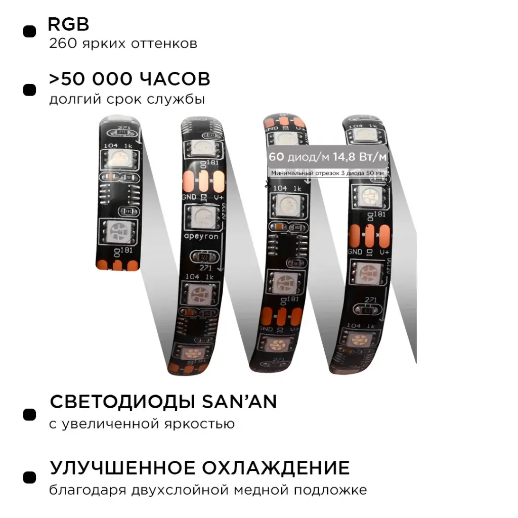 Комплект цифровой светодиодной ленты Apeyron 12В 5050 14,4Вт/м RGB 5м IP65 87ЦЛ