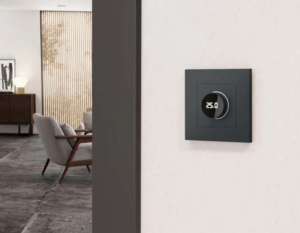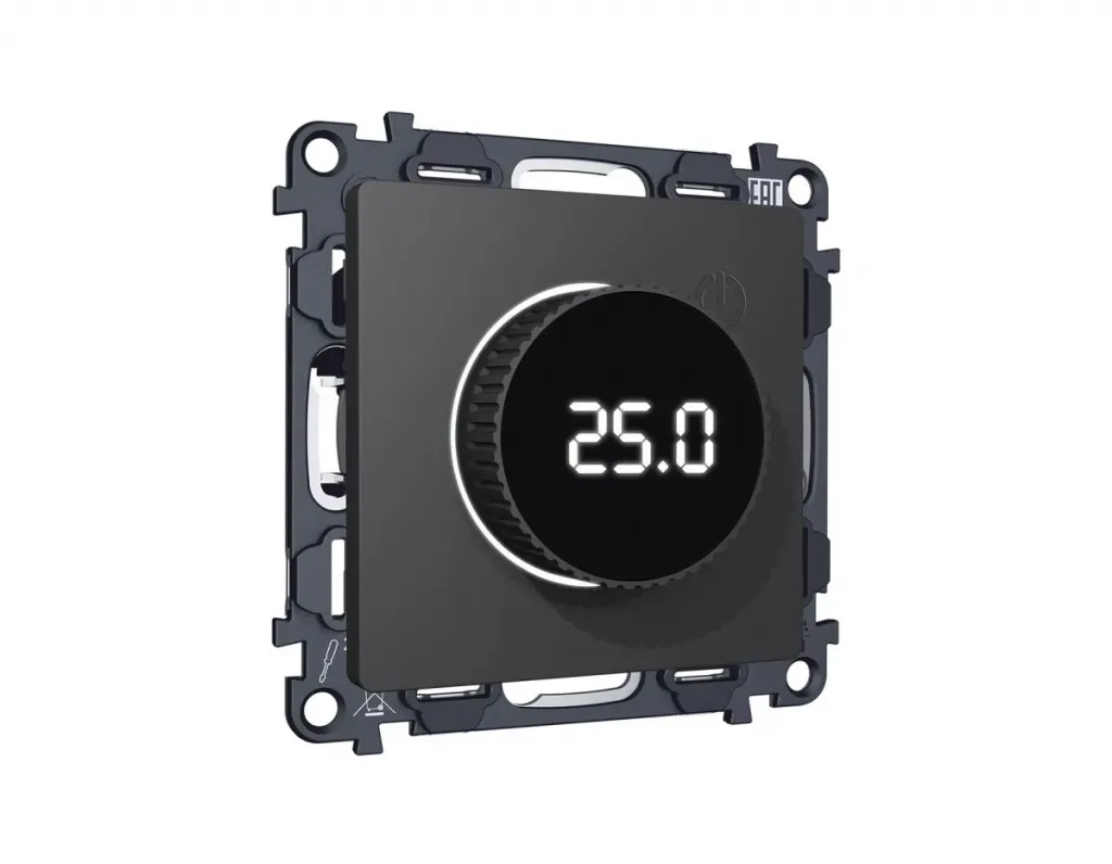 Комплект мех-ма термор-ра с цифровым дисплеем с подсветкой и датчиком для теплого пола Alfa Графит мягкое касание Quant Ambrella Volt MA905810 (AP9058, VM1385)