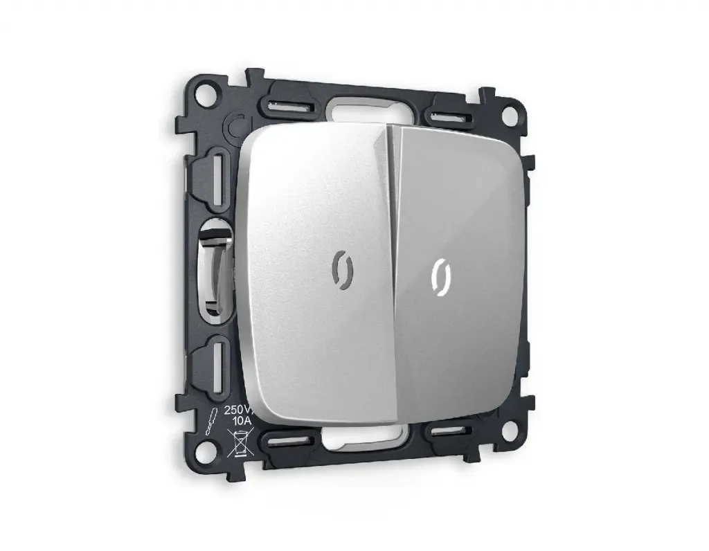 Комплект механизма 2-кл проходного выключателя с подсветкой Ambrella Volt Omega MO404035