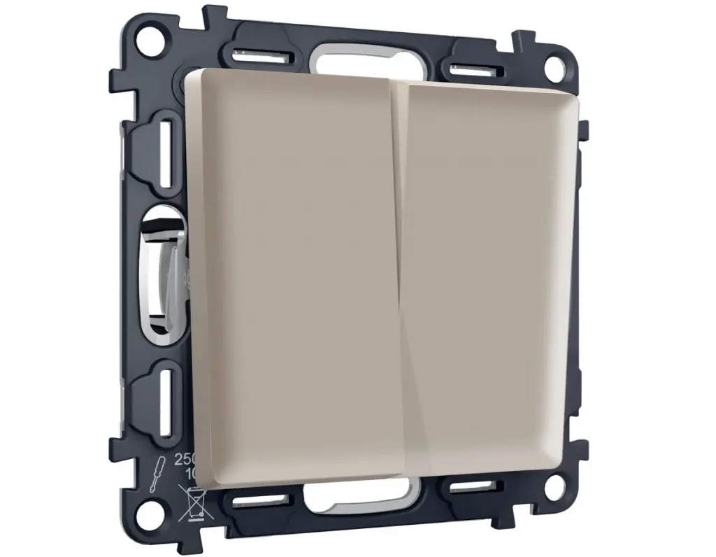 Комплект механизма 2-клавишного перекрестного выключателя 10A-250V Alfa Серо-бежевый матовый Quant Ambrella Volt MA363030 (AP3630, VM125)