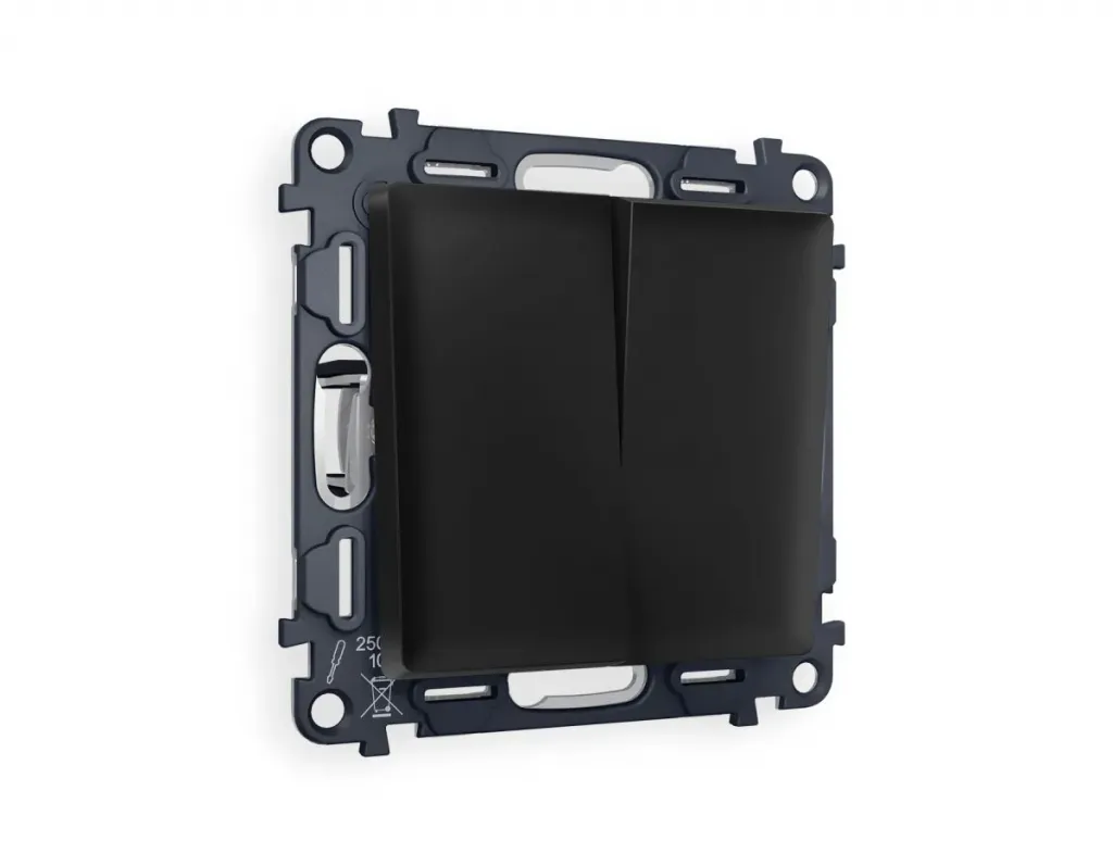 Комплект механизма 2-клавишного перекрестного выключателя 10A-250V Alfa Черный матовый Quant Ambrella Volt MA803030 (AP8030, VM125)
