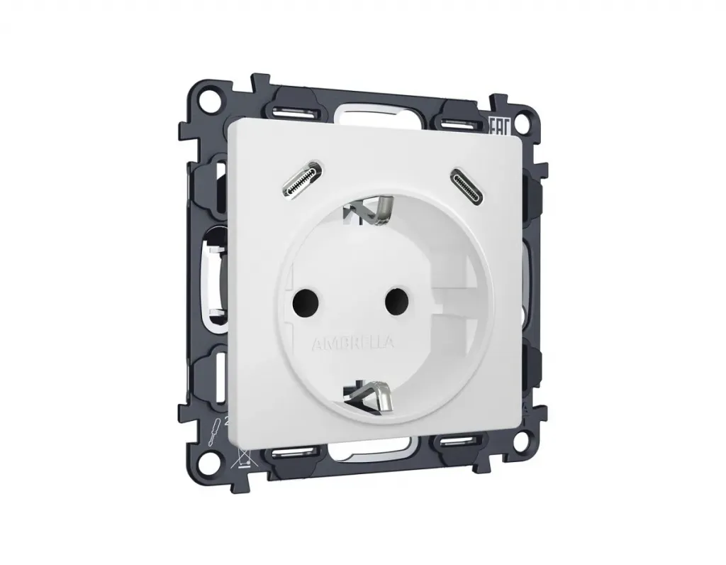 Комплект механизма электрической розетки 2USB С+C 20W с/з на винтовых зажимах 16A-250V Alfa Белый матовый Quant Ambrella Volt MA130510 (AP1305, VM165)