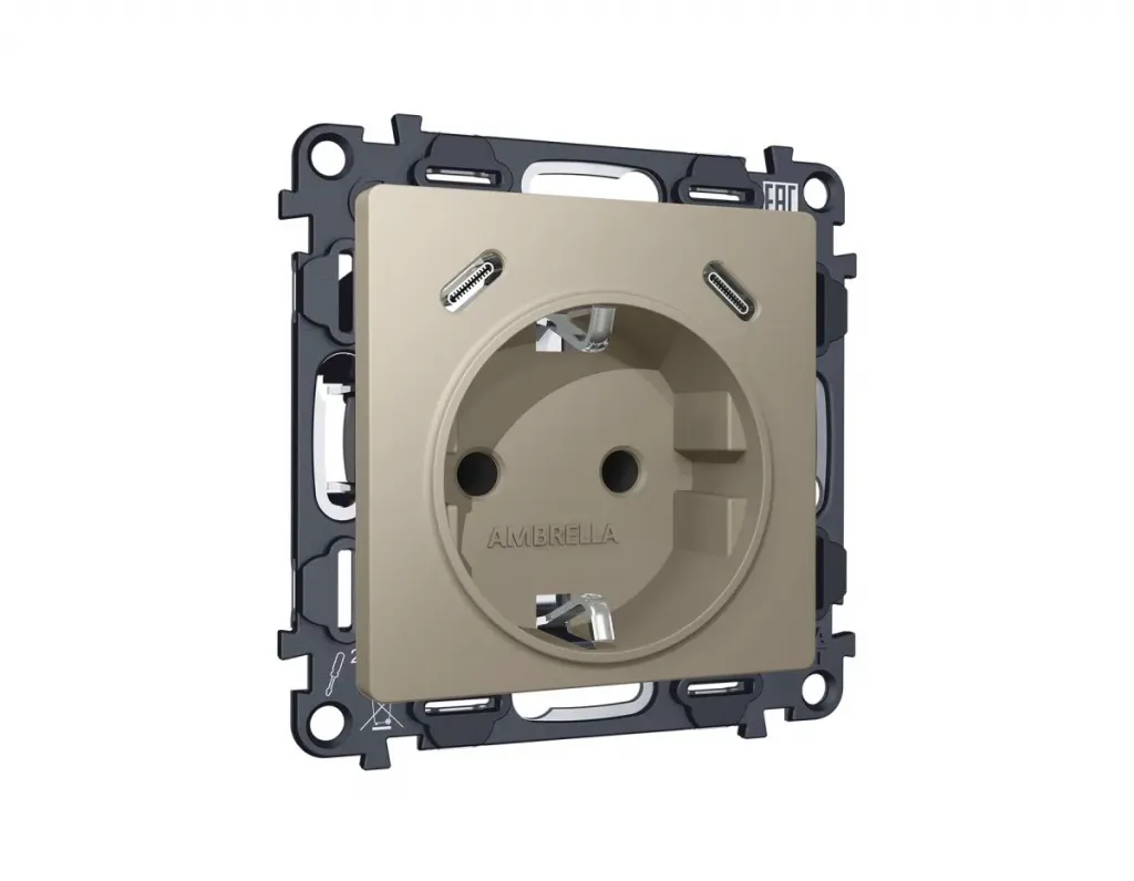 Комплект механизма электрической розетки 2USB С+C 20W с/з на винтовых зажимах 16A-250V Alfa Серо-бежевый матовый Quant Ambrella Volt MA370510 (AP3705, VM165)
