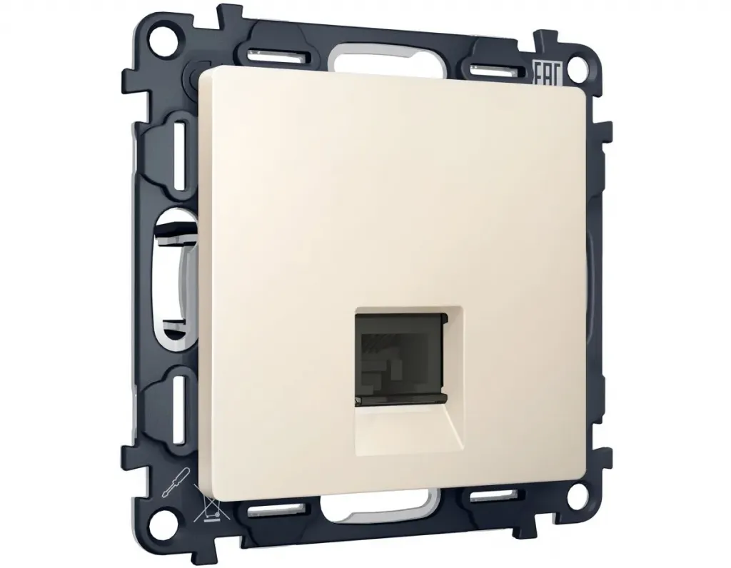 Комплект механизма компьютерной розетки RJ-45 экранированной с автоматической защитной шторкой Alfa Бежевый матовый Quant Ambrella Volt MA332005 (AP3320, VM185)