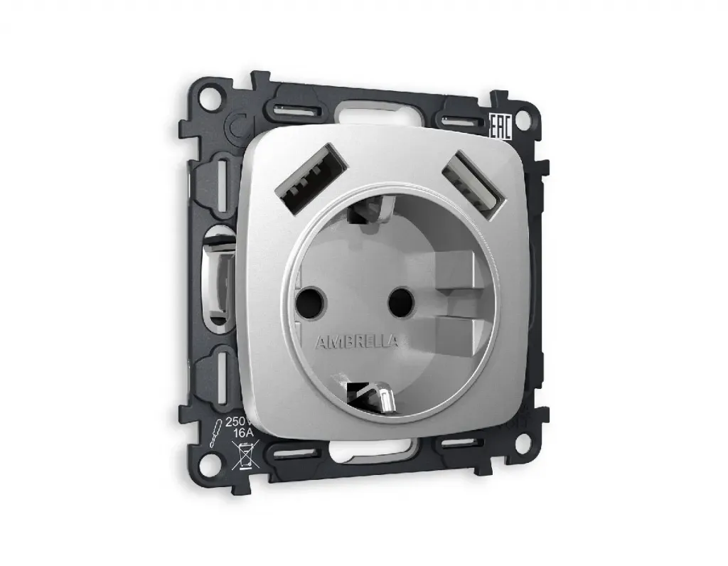 Комплект механизма розетки 2USB A+A 18W (быстрая зарядка) с/з Ambrella Volt Omega MO409010