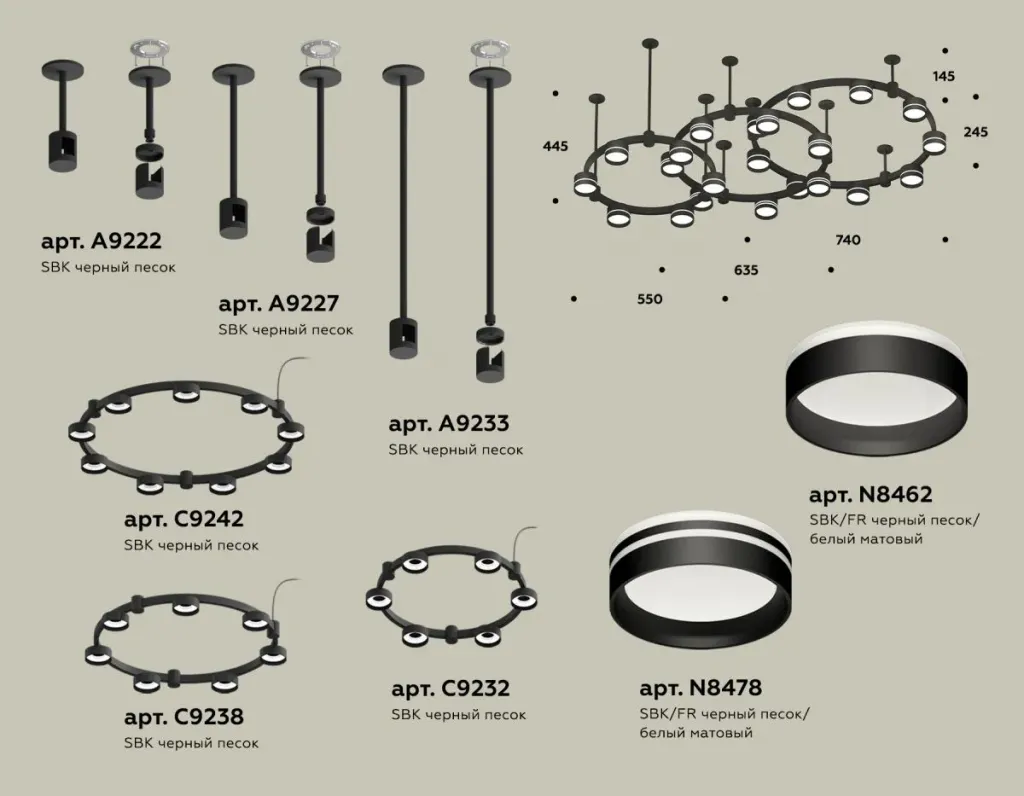 Комплект подвесного светильника Ambrella Light Techno Ring XR92222200 (A9222, A9227, C9233, C9242, C9238, C9232, N8462, N8478)