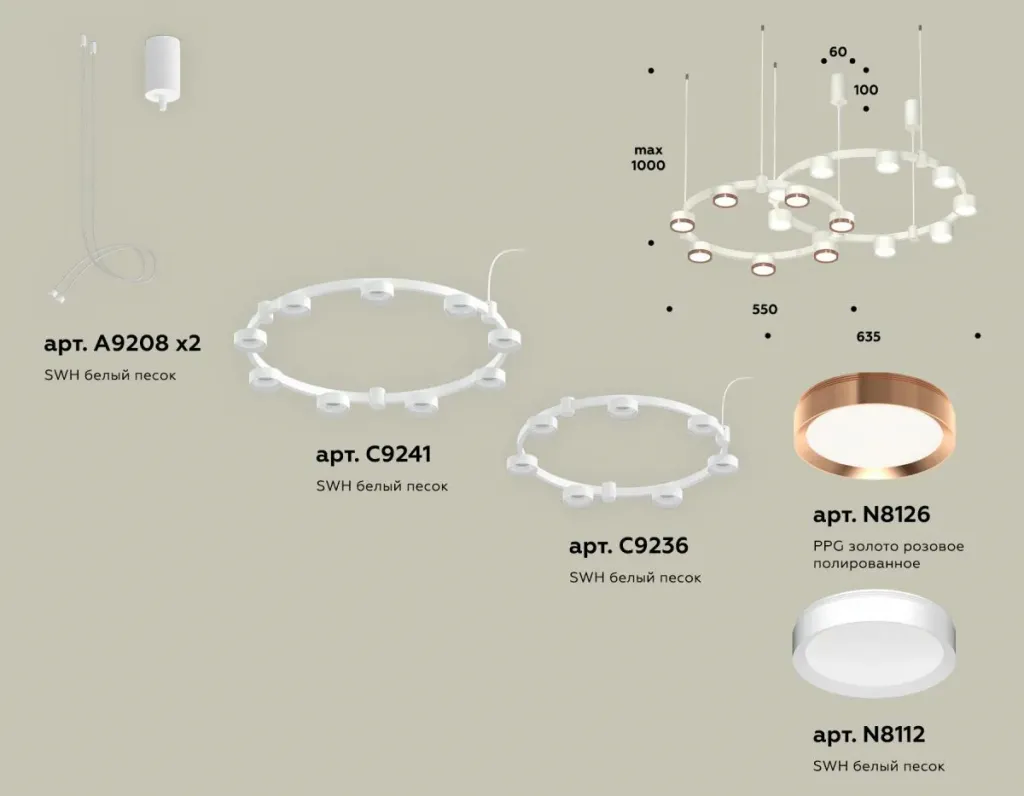 Комплект подвесного светильника Ambrella Light Techno Ring XR92081200 (A9208x2, C9241,C9236,N8112,N8126)