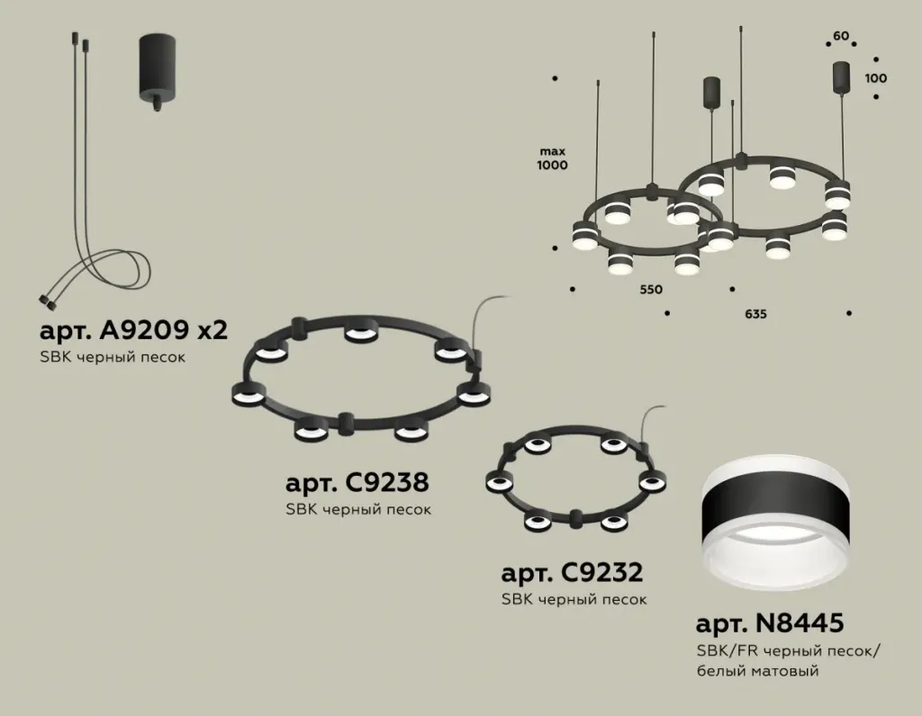 Комплект подвесного светильника Ambrella Light Techno Ring XR92091001 (A9209x2, C9238, C9232, N8445)
