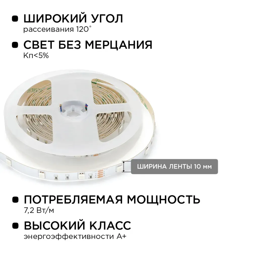 Светодиодная лента Apeyron 12В СТ 12Вт/м smd2835 120д/м IP20 1300Лм/м 3000К 00-118