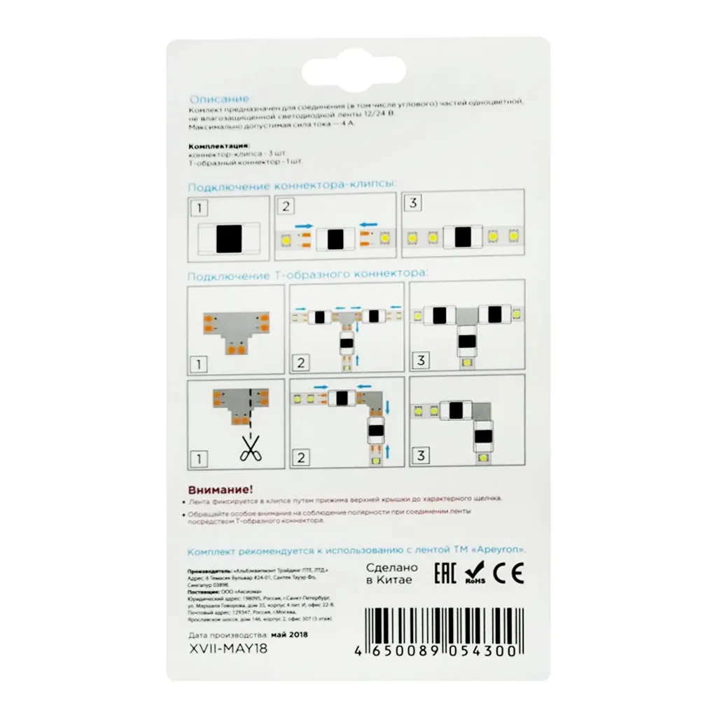 Коннектор для одноцветной светодиодной ленты 3528/2835/5050/5630 8-10мм Apeyron 12/24В 2шт 09-64