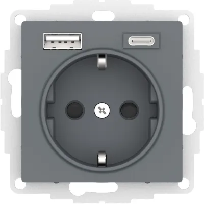 Розетка 16А с USB A+C (5В/2,4А/3 А, 2х5В/1,5А), мех Systeme Electric AtlasDesign Грифель ATN000732