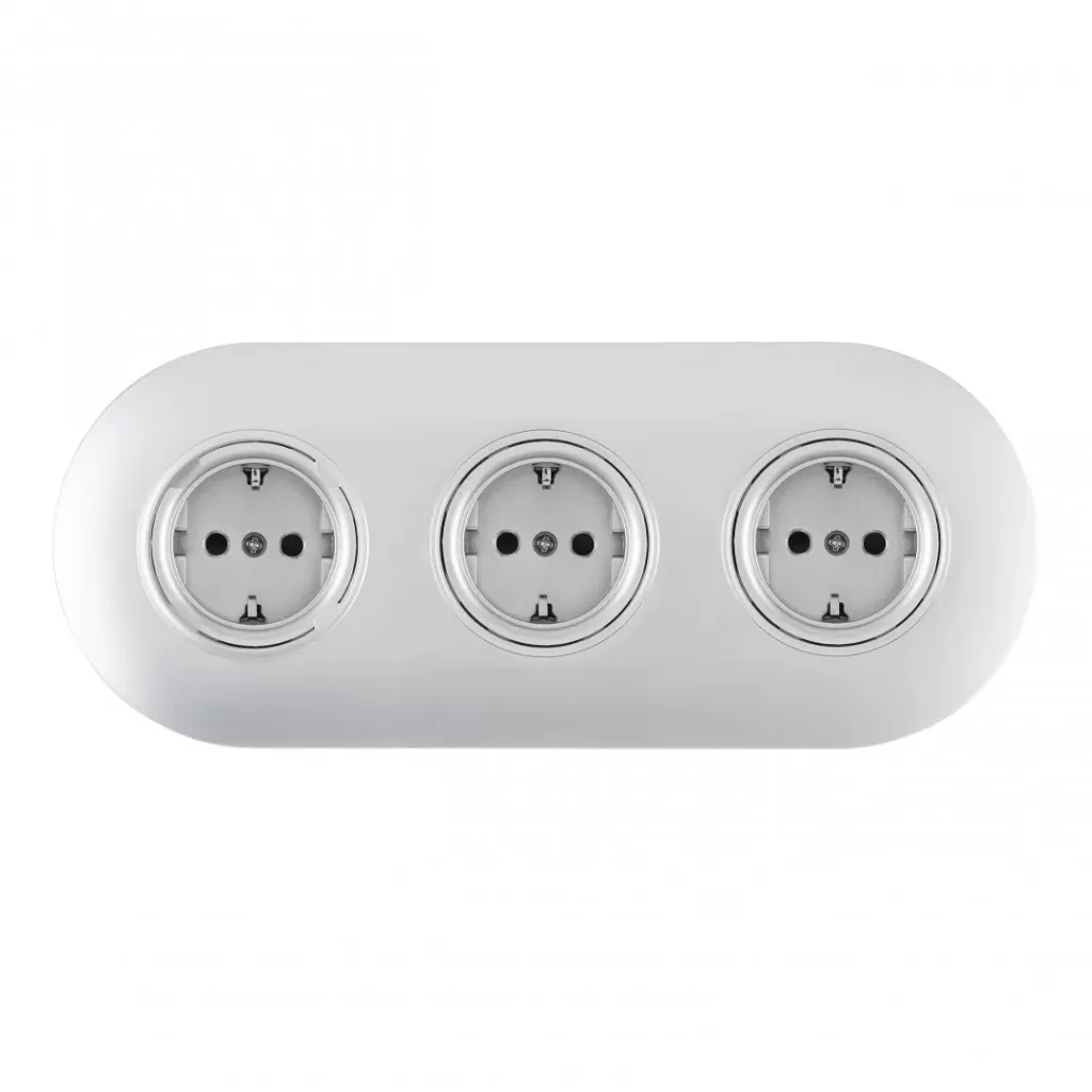 Круглая розетка тройная (трехпостовая) с/з и шторками Arte Milano SET08-3-40-1x3 silver