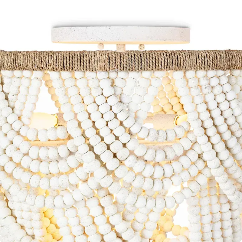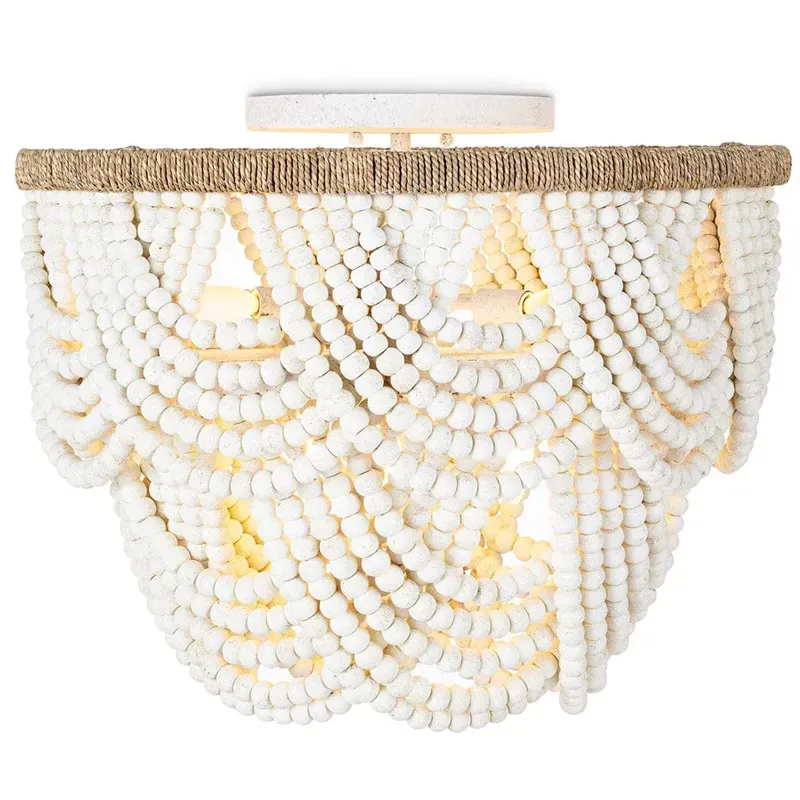 Круглый потолочный светильник с подвесками из круглых деревянных бусин Wooden Beads White Ceiling Lamp