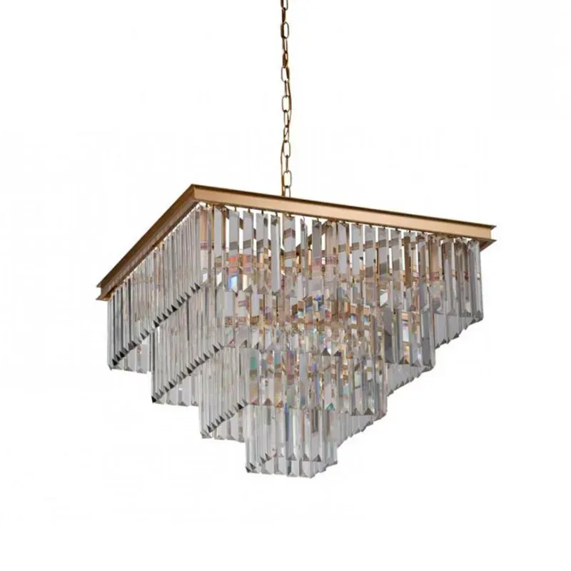 Квадратная Люстра RH 1920s Odeon GOLD iron Five layers Прозрачное Стекло 80х80