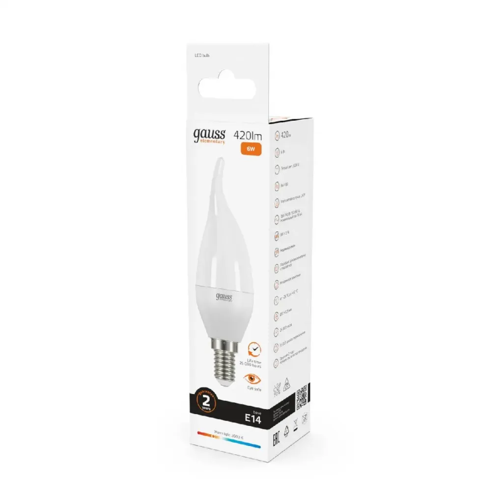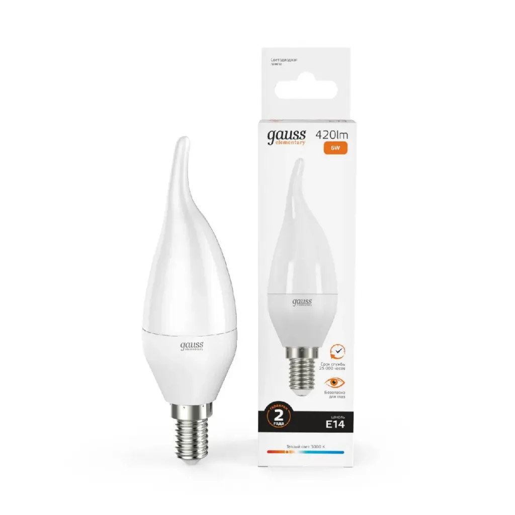 Лампа cветодиодная Gauss E14 6W 3000K свеча матовая 33116