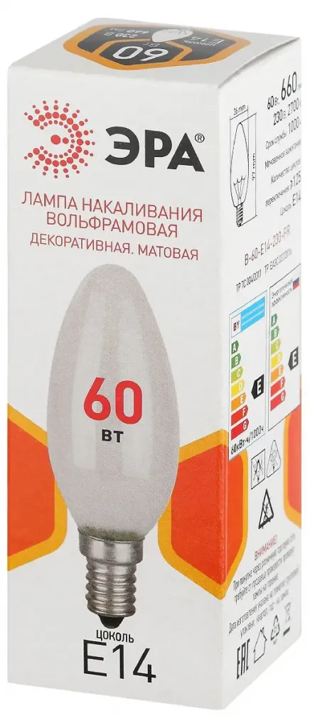 Лампа накаливания Эра B-60-E14-230-FR свечка Б0066376
