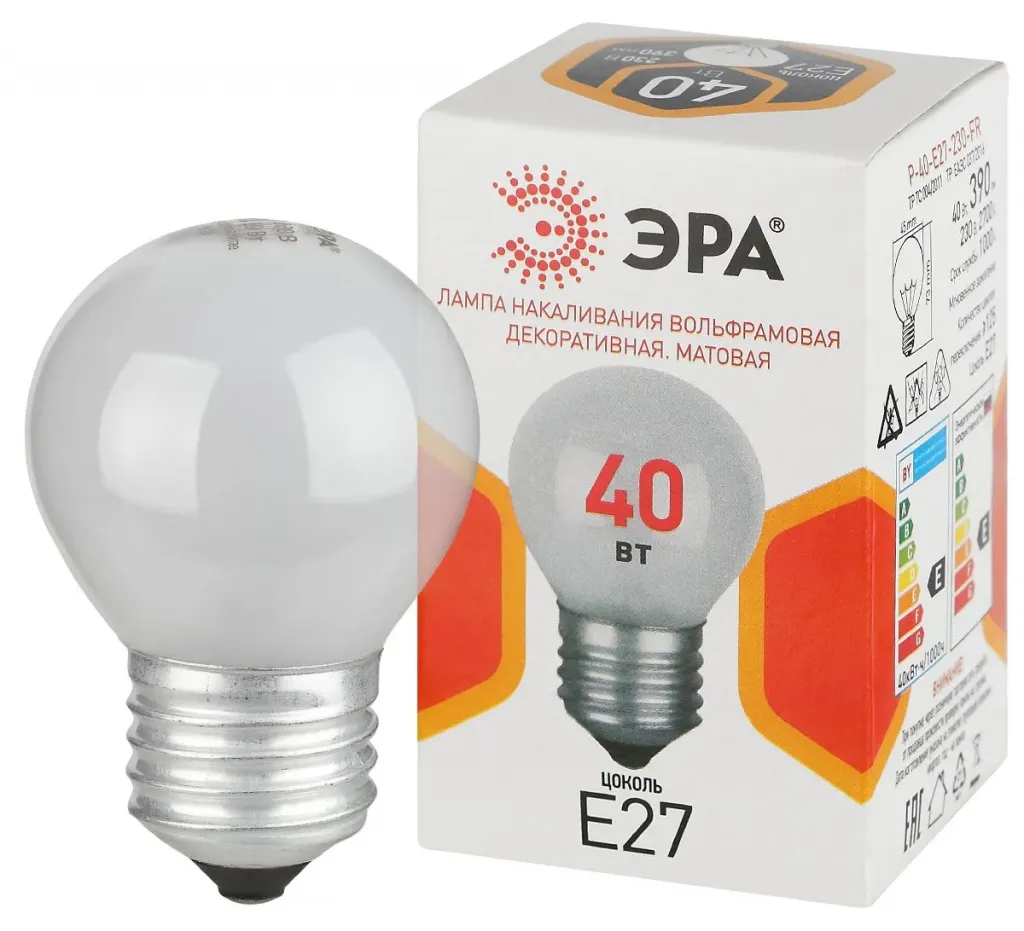 Лампа накаливания Эра P-40-E27-230-FR шар Б0066392