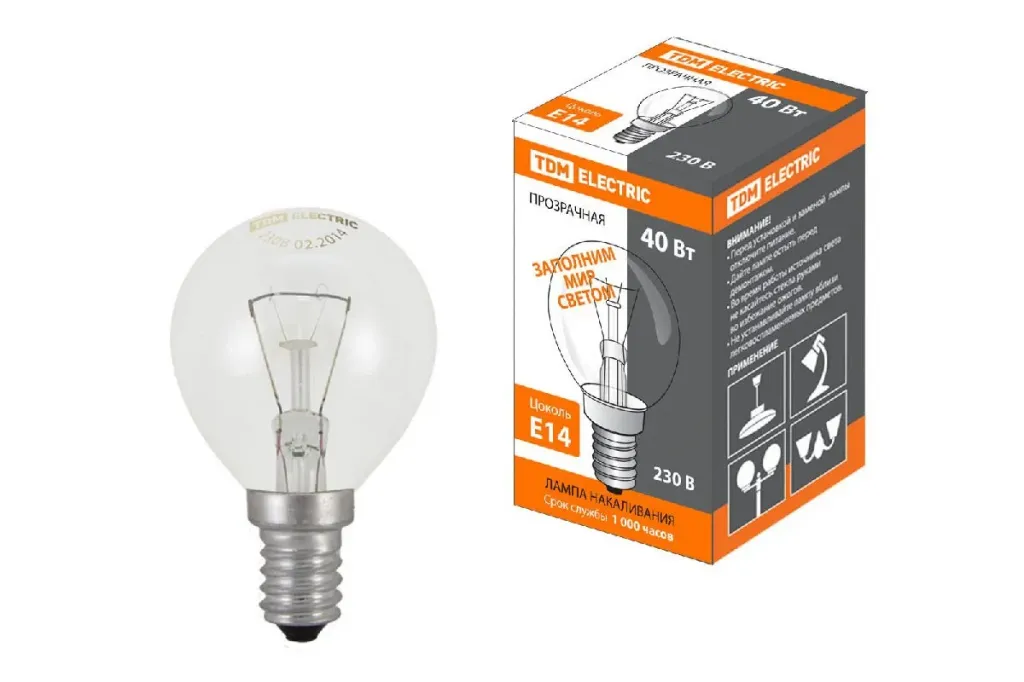 Лампа накаливания TDM Electric Е14 40W прозрачная SQ0332-0009