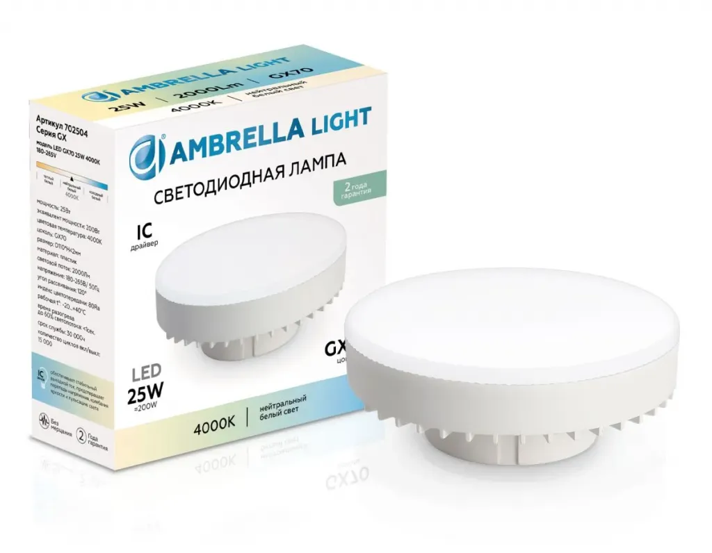 Лампа светодиодная Ambrella Light Bulbing Ambrella Light Bulbing LED GX70 25W IC 4000K 180-265V 702504